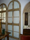 Antique French Pine arched window frame with six windows. All original hardware.
